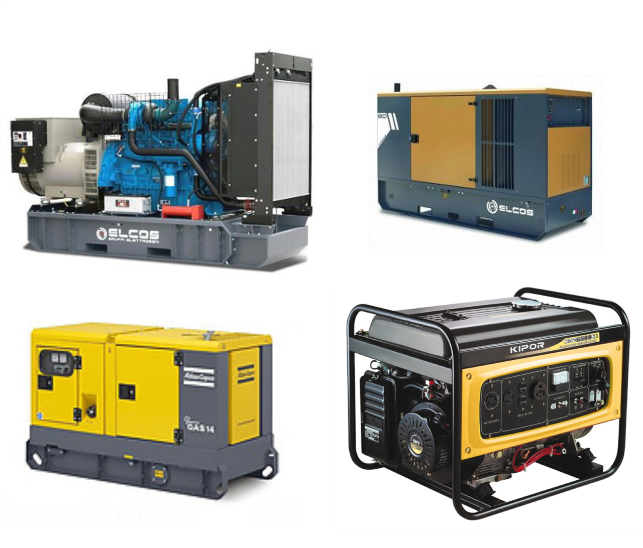 | Генераторы KIPOR | Генераторы ELCOS открытого типа | Генераторы Atlas Copco |